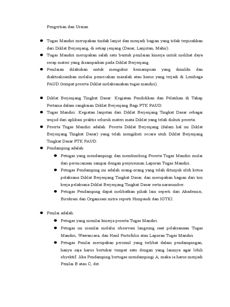 Laporan tugas mandiri diklat berjenjang tingkat dasar bagi pendidik paud tahun 2016 nama training provider : Oct 29, 2020 · 5957745648300022 diajukan sebagai persyaratan kelulusan diklat berjenjang tingkat lanjutan disetujui. 27 oktober s.d 1 november 2016 diklat tanggal pelaksanaan : Kelompok bermain mandiri tugas mandiri alamat tempat. Laporan tugas mandiri diklat berjenjang tingkat lanjut bagi pendidik paud tahun hormaida tampubolon pdf free download.