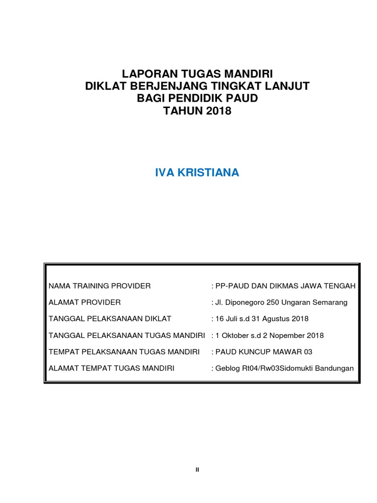 Admin blog kumpulan contoh laporan 2019 juga mengumpulkan gambar gambar lainnya terkait contoh laporan tugas mandiri diklat dasar paud 2018 pdf dibawah ini.